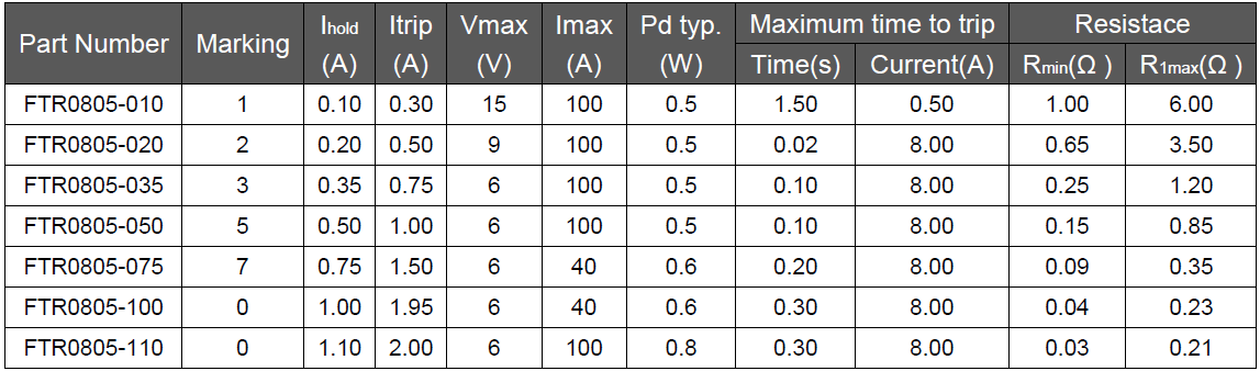 Small size of 0805Ihold: 0.1 - 1.1 AFast tripping resettable circuit protectionSurface mount packaging for automated assembly