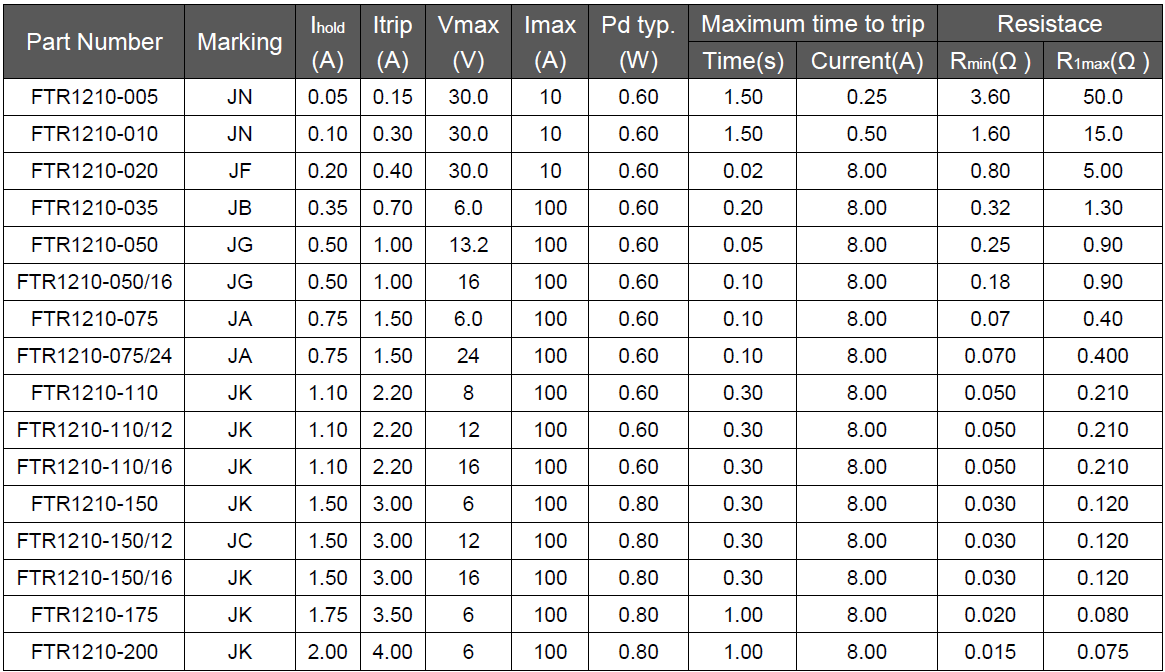 Small size of 1210Ihold: 0.05 - 2 AFast tripping resettable circuit protectionSurface mount packaging for automated assembly